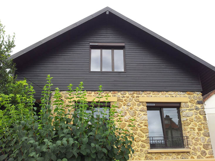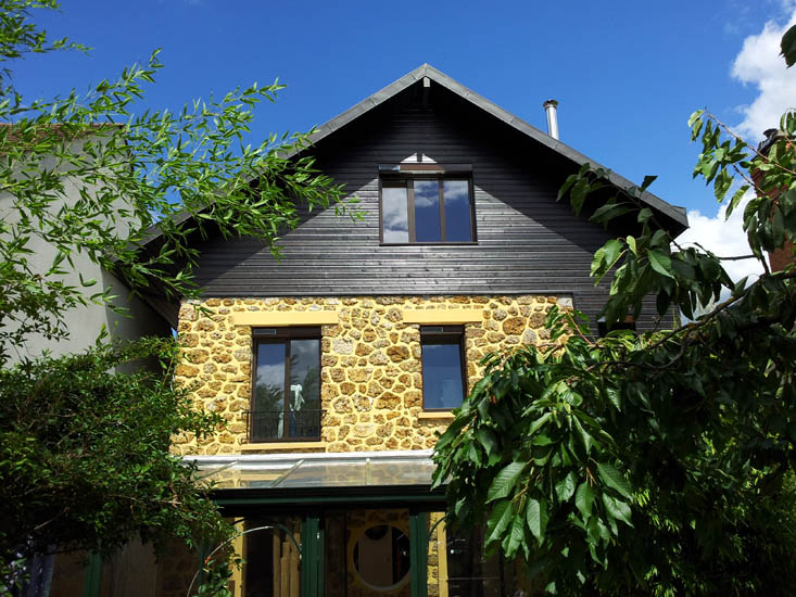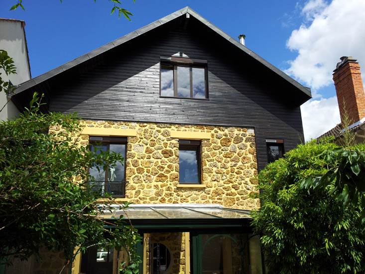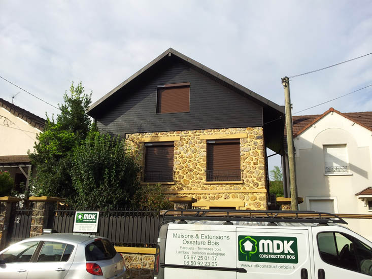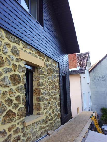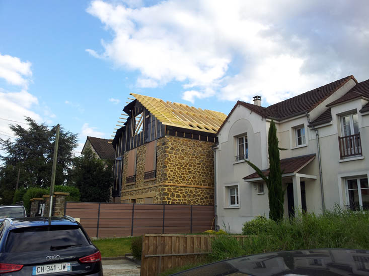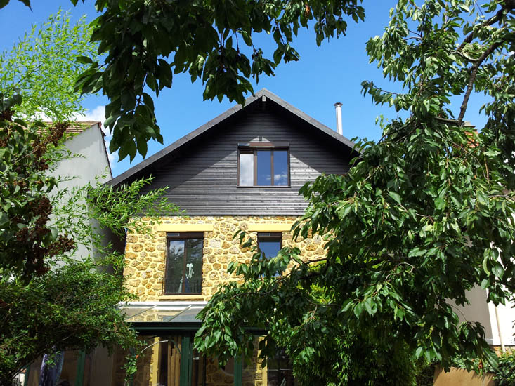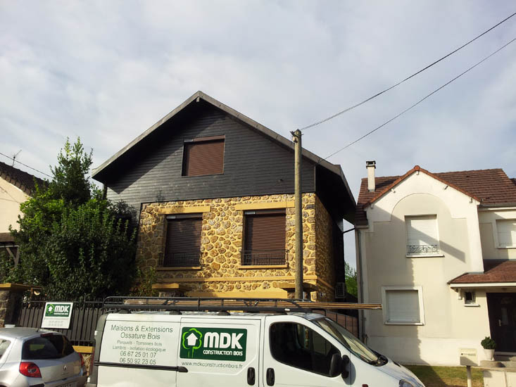 Surélévation ossature bois sur une maison en meulière des années 50.